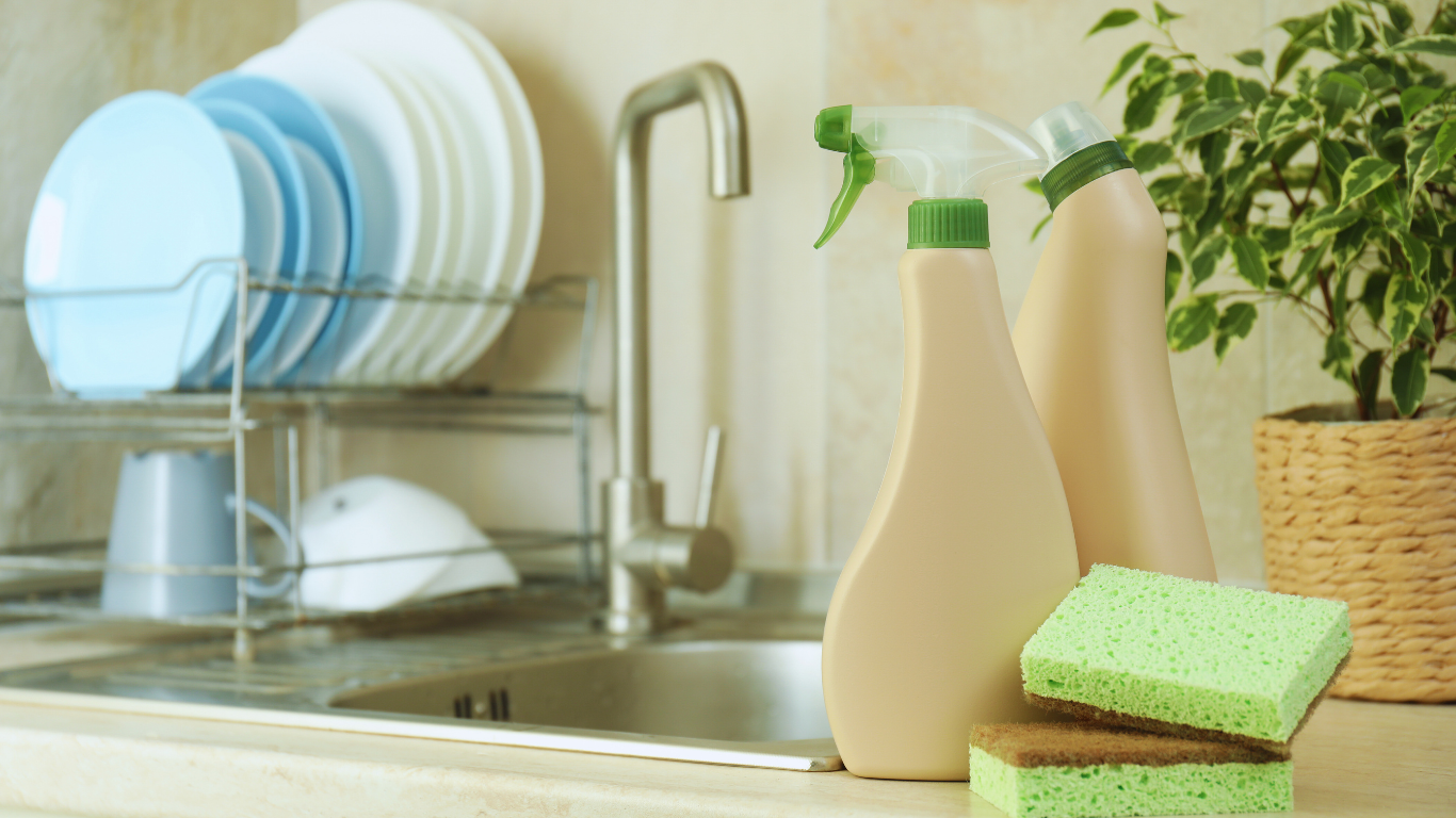 洗剤のボトルがいくつも並び、どれを使うか一瞬迷う。